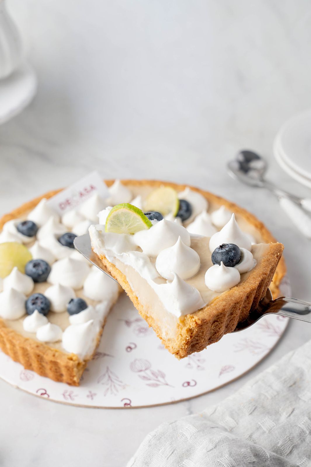 Relleno a base de yogurt griego con una base de galleta de almendras.